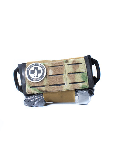 BRIK™, SKTBRD™, CAT® Gen 7 Tourniquet, Quikclot® Rolled Gauze, Hyfin® Compact Chest Seals Twin pack, NAR® Mini ETD®, NAR® Compressed Gauze, Mylar Blanket, Trauma Shears, Mini Marker, 4 ft Flat Fold Duct Tape, Gloves