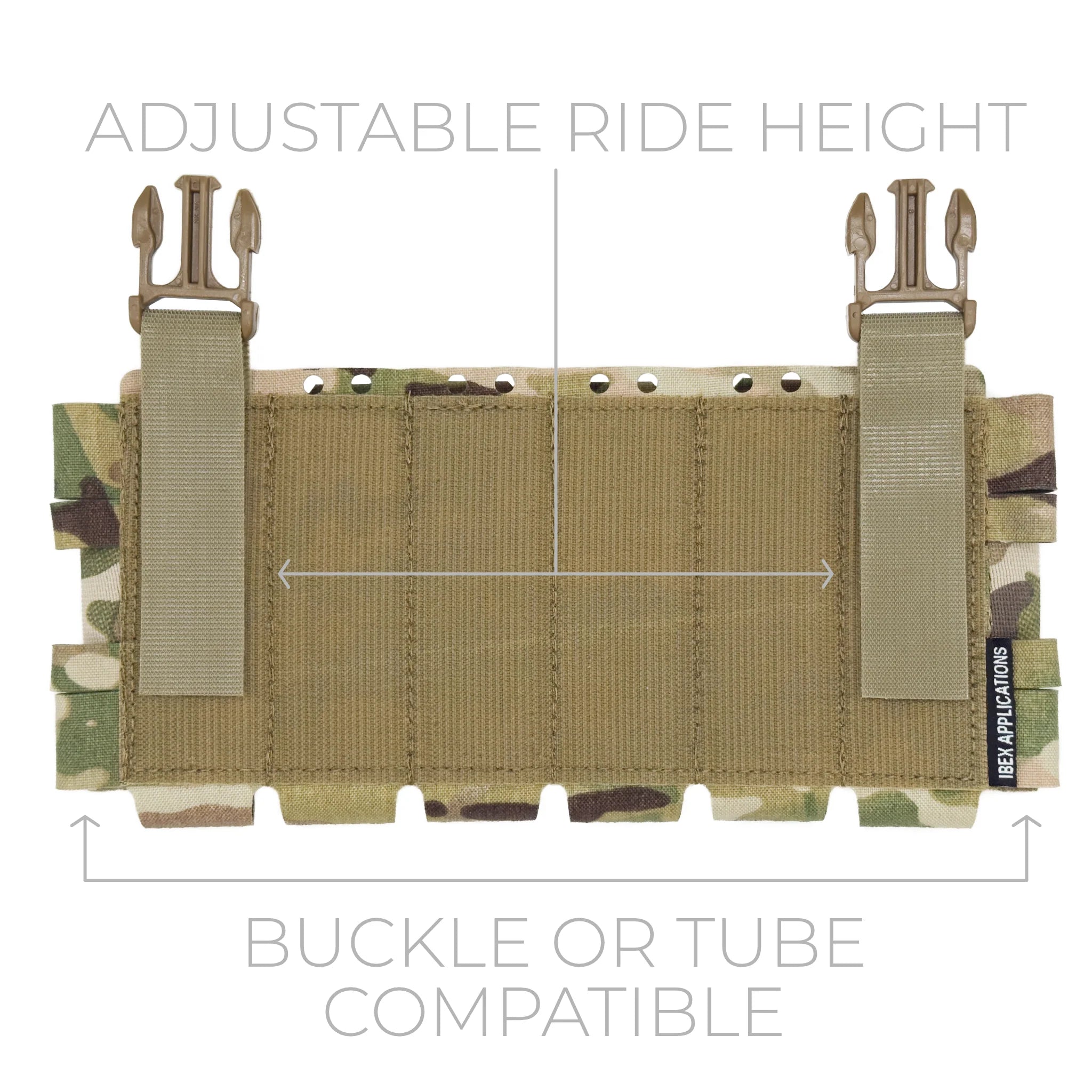 Compatible with both 1" side-release buckles (included) to operate as a chest rig, or FirstSpear Tubes® to interface directly with a plate carrier cummerbund. Upper buckles are ride height adjustable.